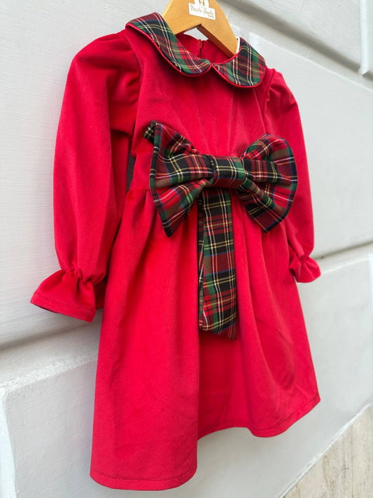 ABITO ROSSO CON FIOCCO TARTAN PAPPA& LATTE