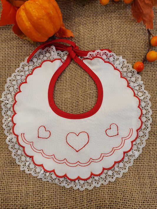 BAVETTA DOPPIO RICAMO CON CUORI ROSSI PAPPA&LATTE
