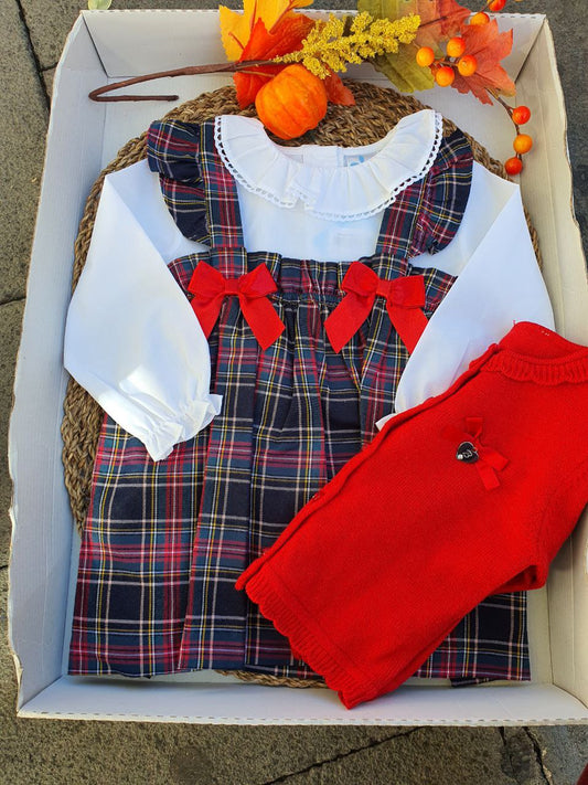 ABITO ROSSO CON FIOCCO TARTAN PAPPA& LATTE
