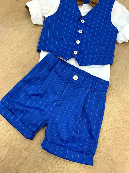 COMPLETO CAMICIA BIANCA CON PAPILLON E SHORTS BLU