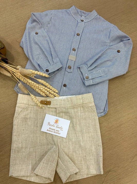 COMPLETO CAMICIA BIANCA E SHORTS BEIGE CALAMARO