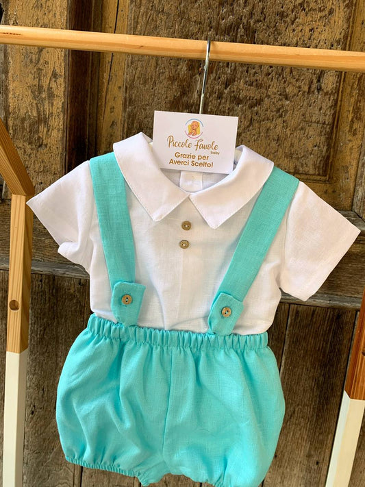 COMPLETO CAMICIA BIANCA E SHORTS VERDE CALAMARO