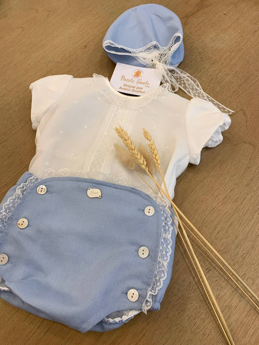 ABITO BATTESIMALE CON CUFFIETTA CELESTE NISERET