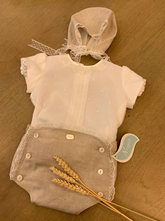 ABITO BATTESIMALE CON CUFFIETTA SABBIA NISERET