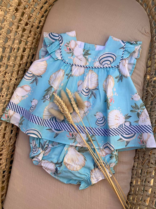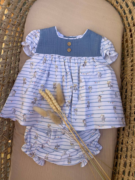 TUTINA SPEZZATA IN FILO CON POIS BEIGE E TURCHESI NICO DINGO