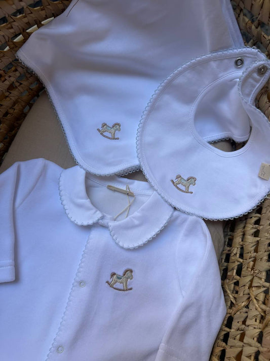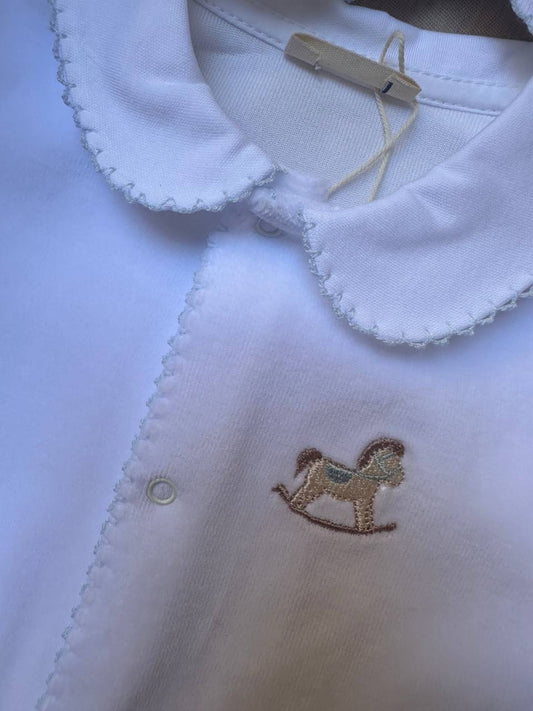 Tutina Bianca e CELESTE CAVALLO A DONDOLO BABY GI
