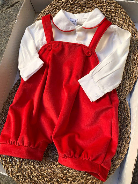 SALOPETTE E CAMICIA ROSSO PAPPA E LATTE