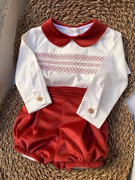 Completo PUNTO SMOCK ROSSO Valentina bebès