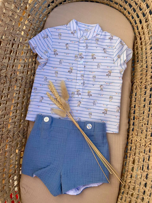 CAMICETTA QUADRETTI GIALLO E SHORTS BLU DEL SUR
