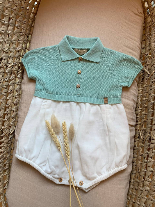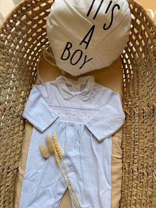 TUTINA CELESTE IN COTONE PUNTO SMOCK BABY FASHION
