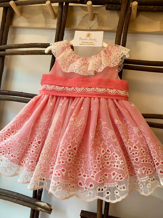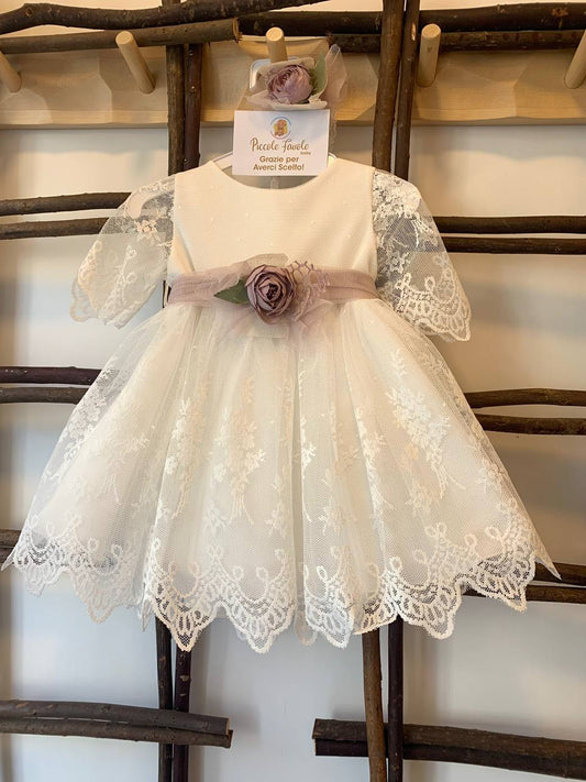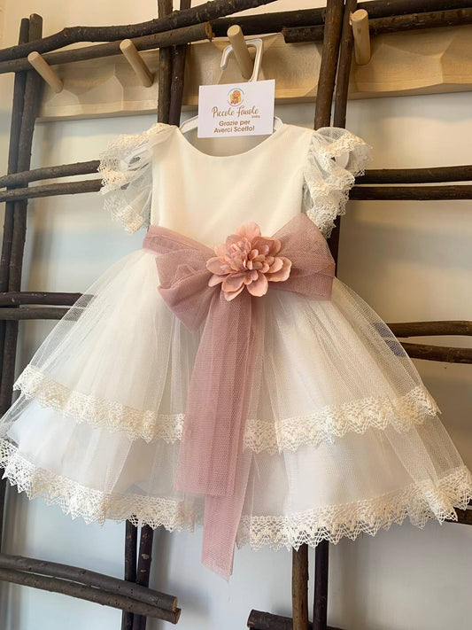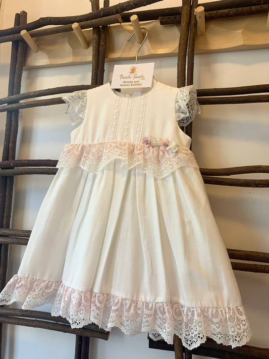 In offertaABITO CERIMONIA IN PIZZO BIANCO E ROSA