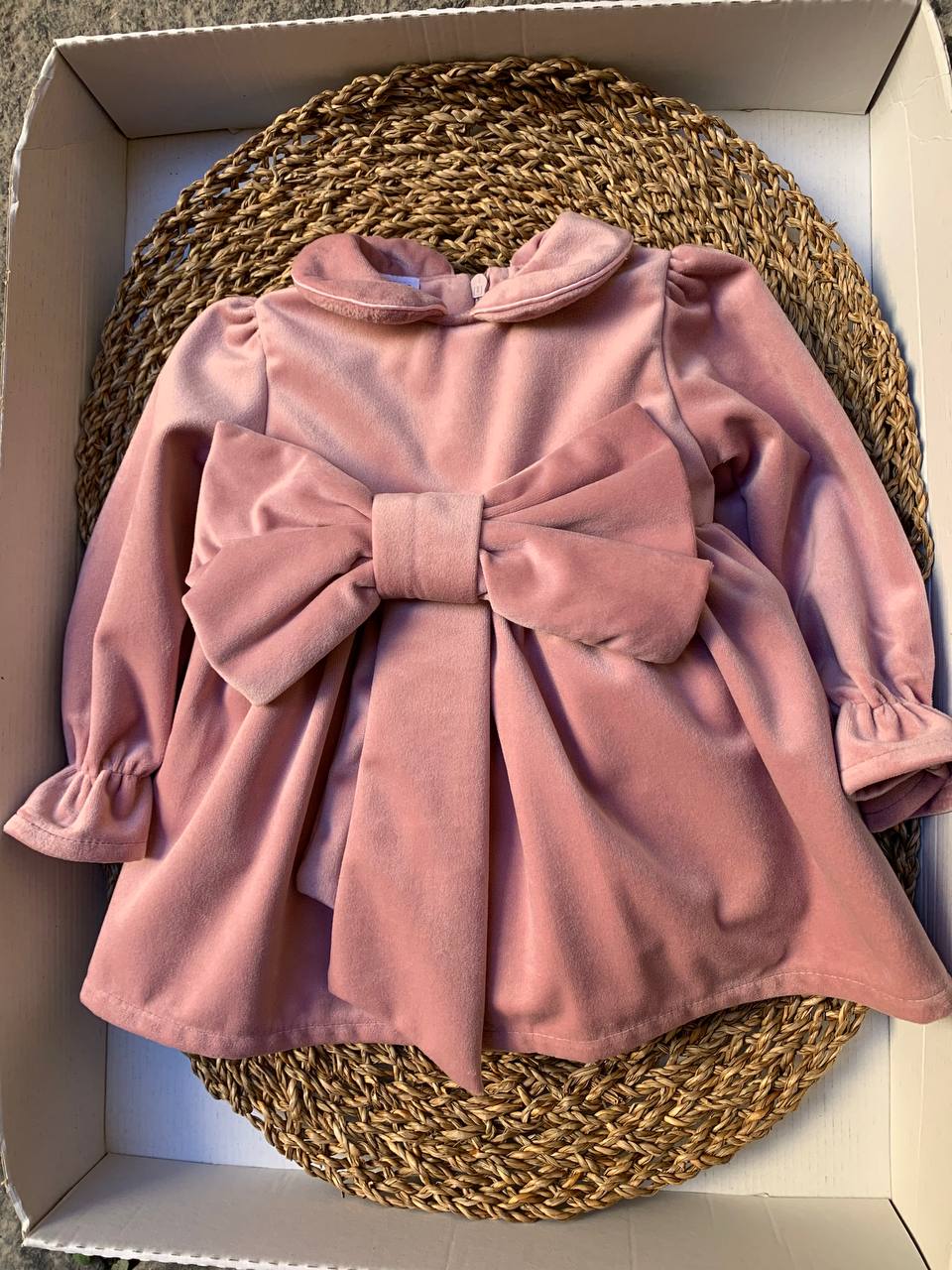 Questo grazioso abitino rosa è realizzato in morbido velluto e presenta un fiocco adornato sul davanti. Perfetto per le piccole principesse, è ideale per tutti i giorni o per occasioni speciali. Il materiale in velluto garantisce comfort e morbidezza, mentre il fiocco aggiunge un tocco di eleganza. Ideale per le mamme che cercano un abbigliamento raffinato ma comodo per le loro bambine.