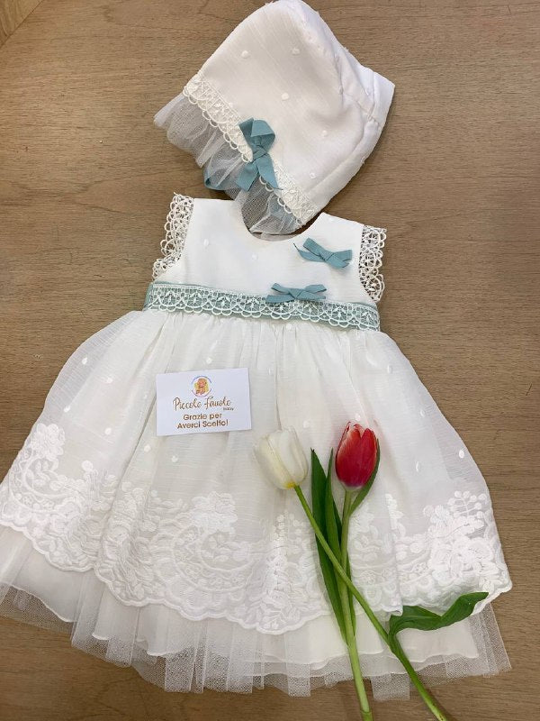 Vesti la tua neonata con il meraviglioso ABITO BATTESIMALE CON CUFFIETTA BIANCO E VERDE ! Realizzato con tessuti di alta qualità, questo abito è perfetto per la cerimonia del battesimo. Il bianco e il verde si uniscono in un design unico, donando un tocco di freschezza e luce alla tua piccola. Sentiti orgogliosa mentre la presenti alla tua comunità con questo abito splendido!