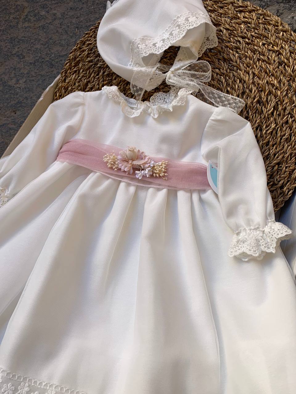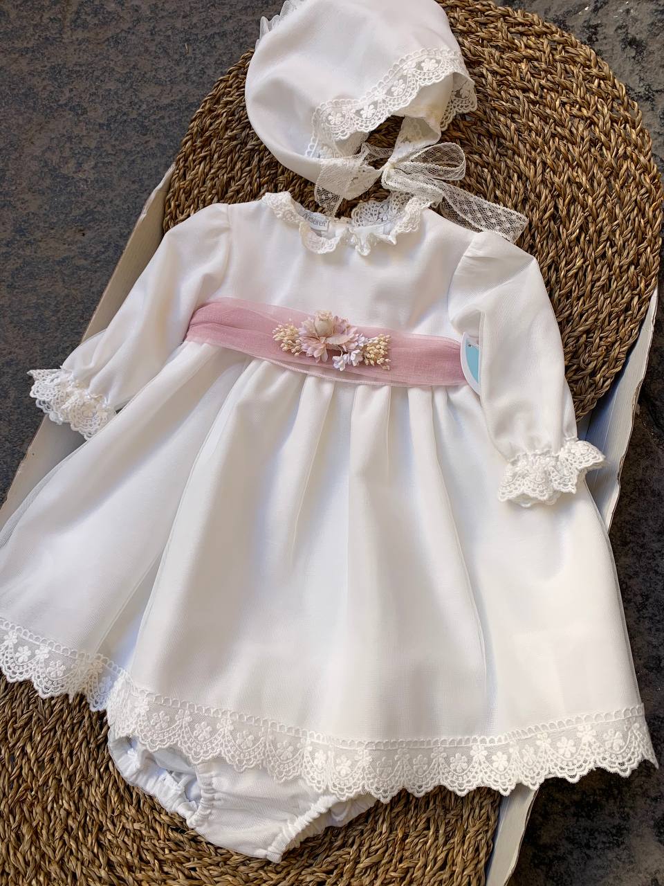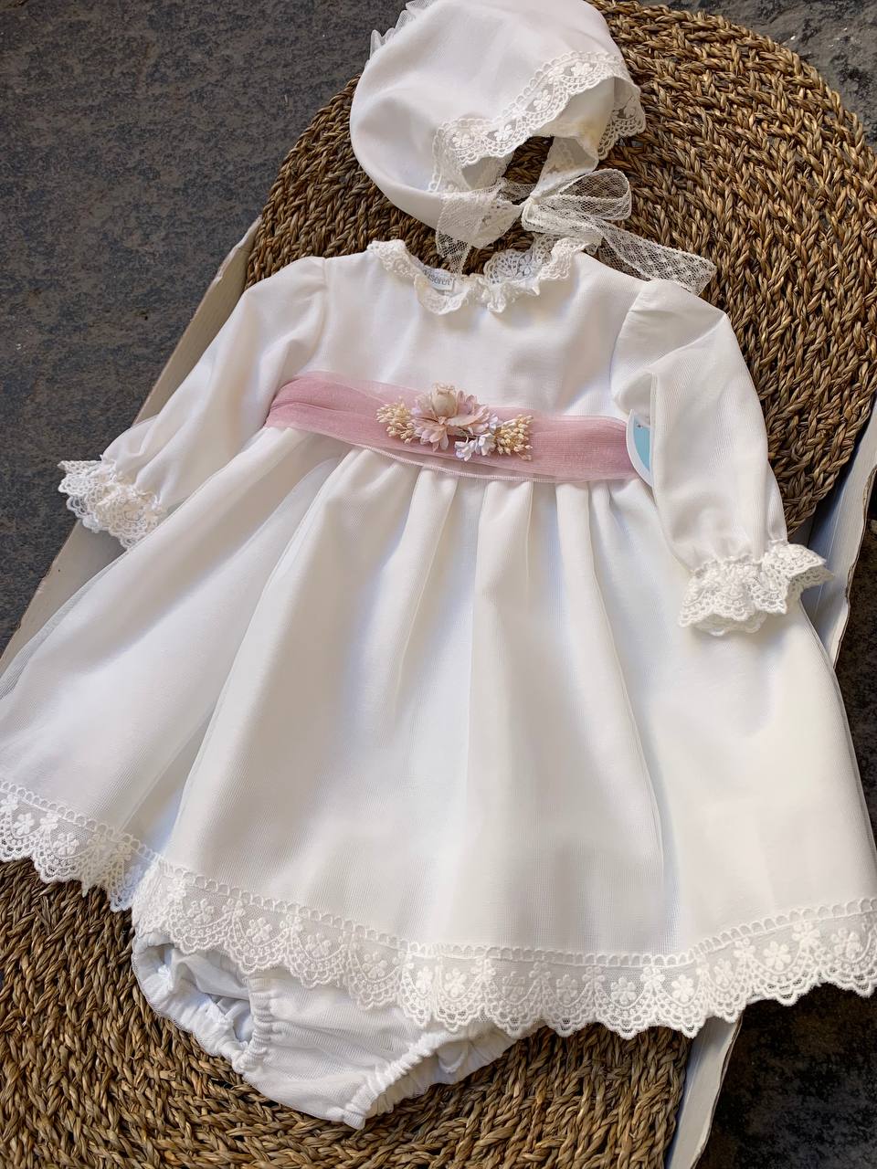 Abito battesimale rosa per neonate, completo di cuffietta coordinata. Perfetto per l'occasione speciale del battesimo, garantendo comfort e stile per la tua piccola. Disegnato appositamente per bambine, il nostro abito candida rosa è un'ottima scelta per un'occasione così importante.