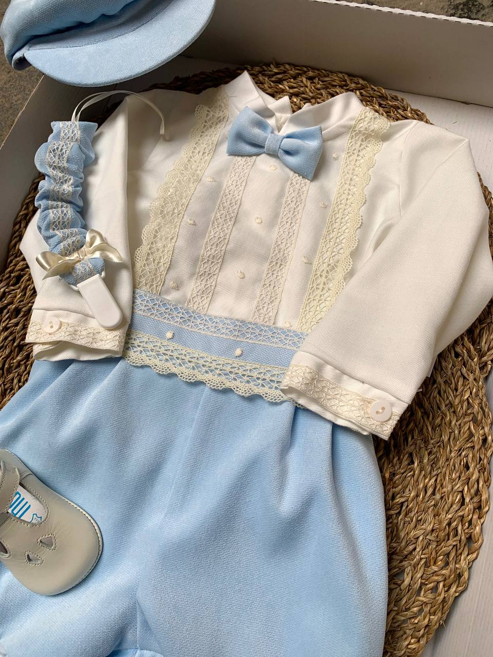 Questo abito battesimale, realizzato con pregiati tessuti, è perfetto per celebrare il battesimo del vostro neonato. Il suo elegante colore cielo sarà perfetto per un'occasione speciale come questa. Regalerà al vostro bambino un look raffinato e confortevole, rendendo il suo battesimo ancora più memorabile.