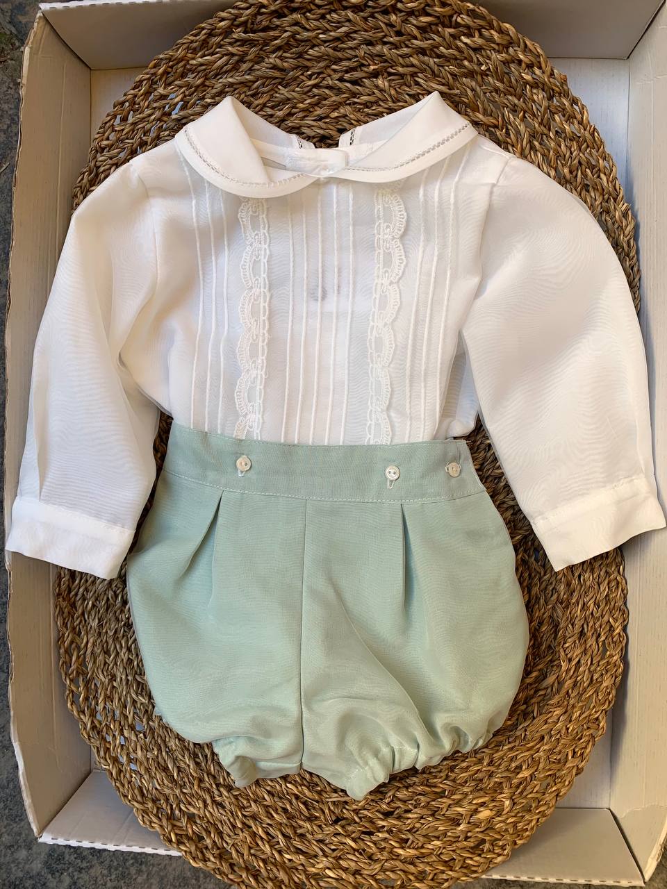 Questo abito battesimale CRISTAL VERDE CHARO è perfetto per il tuo neonato. Grazie al suo tessuto cristallo e al colore verde brillante, il tuo bambino si sentirà fresco e comodo durante la cerimonia. Con questo abito, il tuo piccolo sarà il centro dell'attenzione e tutti noteranno la sua eleganza.