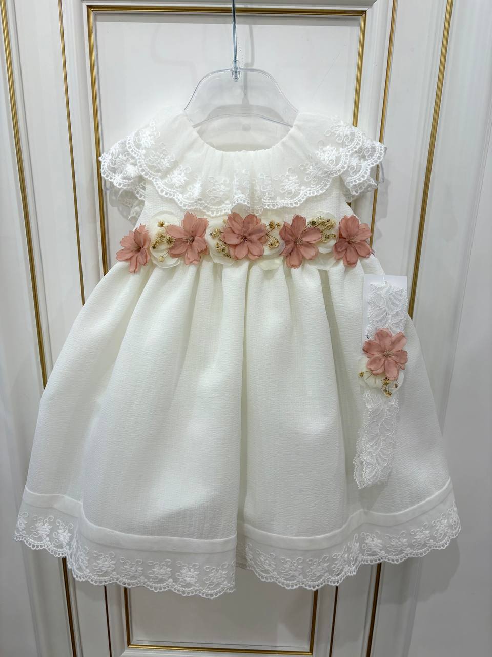 L'Abito Battesimale FLOREALE PONTO POR PONTO per neonata è realizzato in un elegante design floreale e comprende una fascia abbinata. Questo abito non solo conferisce un aspetto raffinato durante il battesimo, ma garantisce anche comfort grazie ai materiali di alta qualità utilizzati nella sua realizzazione.