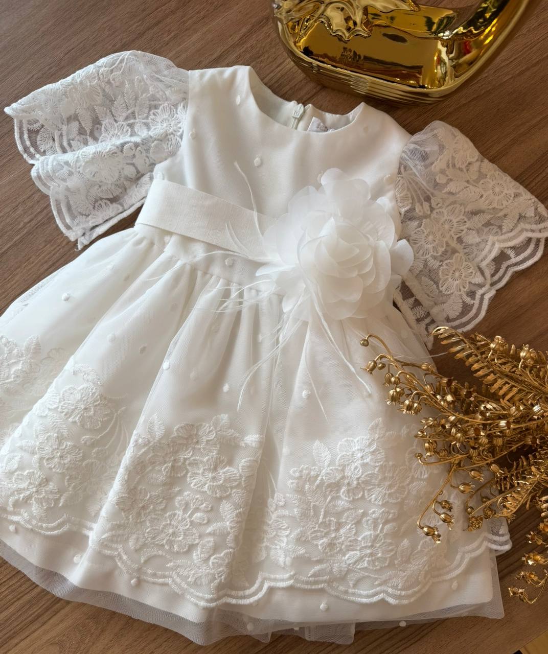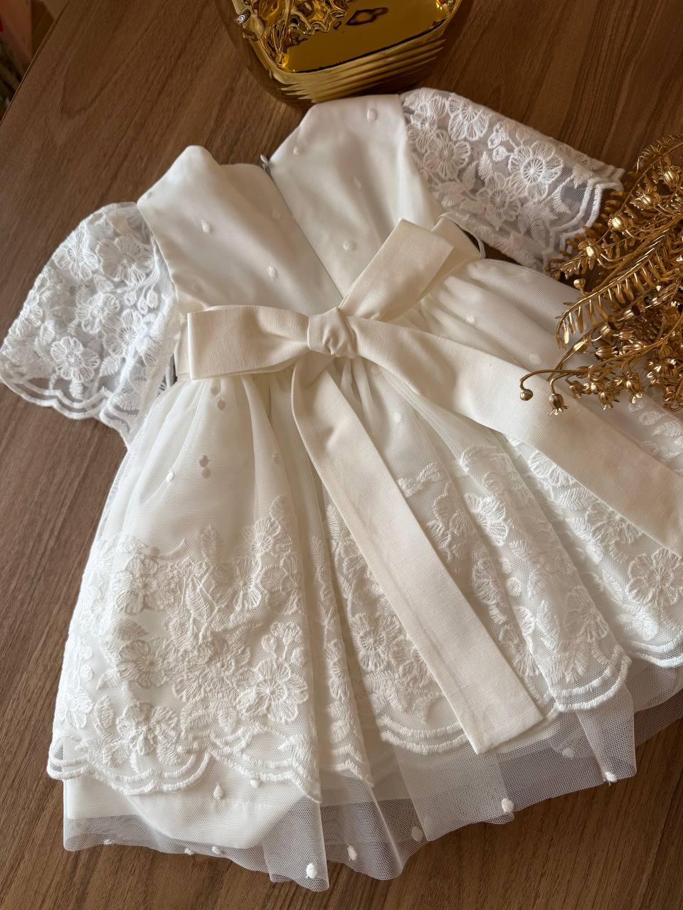 Abito battesimale elegante e raffinato, perfetto per il giorno speciale della cerimonia della vostra neonata. Realizzato con dettagli ricamati a fiori che catturano la luce, questo capo combina tradizione e delicatezza. teto e la tatta conferiscono un tocco di solennità e grazia, mentre il tessuto morbido garantisce il massimo comfort per la piccola. Un investimento in un momento indimenticabile, un abito che diventerà un ricordo prezioso da conservare nel tempo.