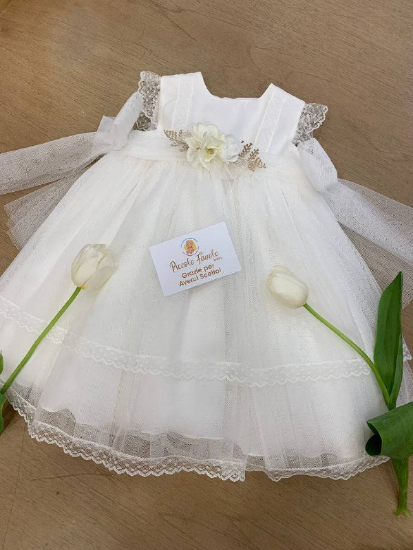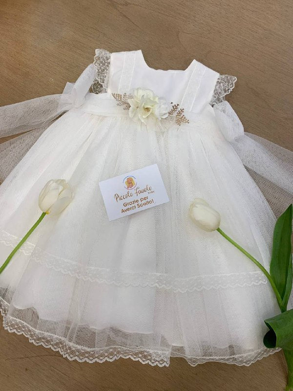 Scopri l'eleganza e la grazia dell'ABITO BATTESIMALE PERLA per neonate. Realizzato con cura e amore, questo vestito è perfetto per il battesimo della tua piccola. Il tessuto di alta qualità e il design unico rendono questo abito un'opera d'arte. Aggiungi un tocco di luce al tuo battesimo con l'ABITO BATTESIMALE PERLA!