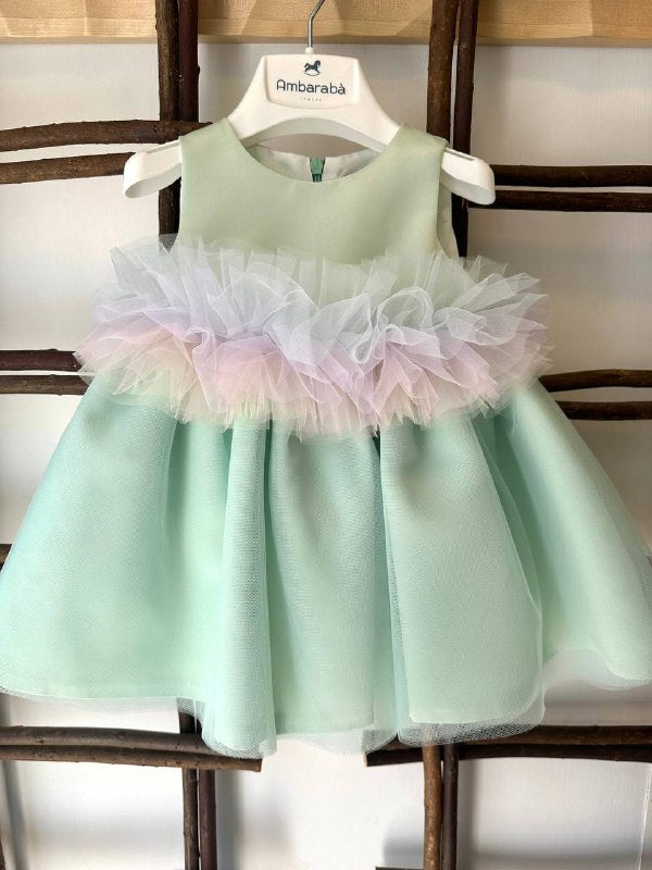 Scopri l'eleganza e la tranquillità con l'ABITO CERIMONIA VERDE AMBARABA' NEONATA. Realizzato con un verde vivace e ricco di vita, questo abito è perfetto per ogni festa e cerimonia. Rendere la tua neonata ancora più bella e alla moda con questo meraviglioso abito.