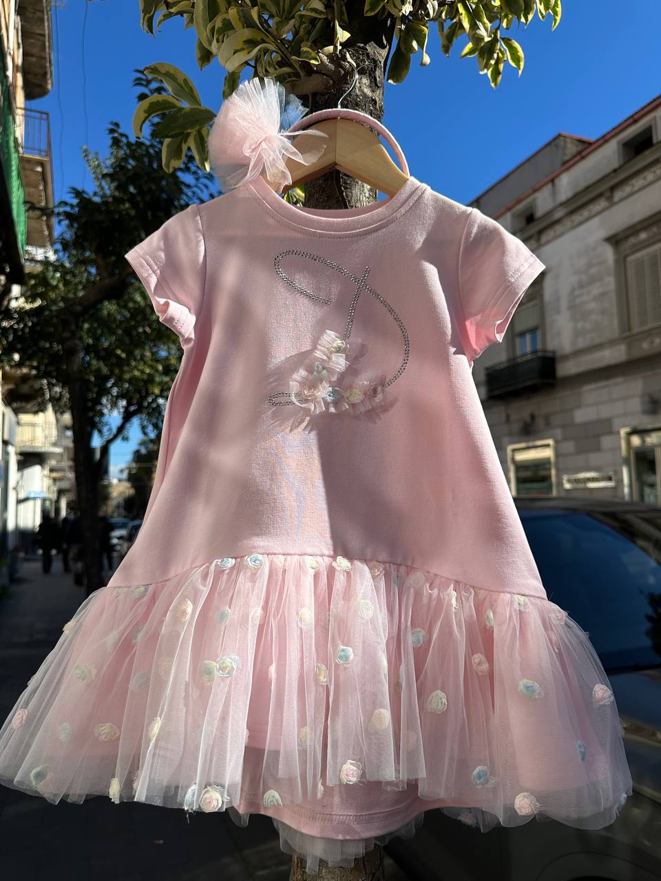 Splendido abito Daga in rosa in t-shirt con gonna in tulle rosa