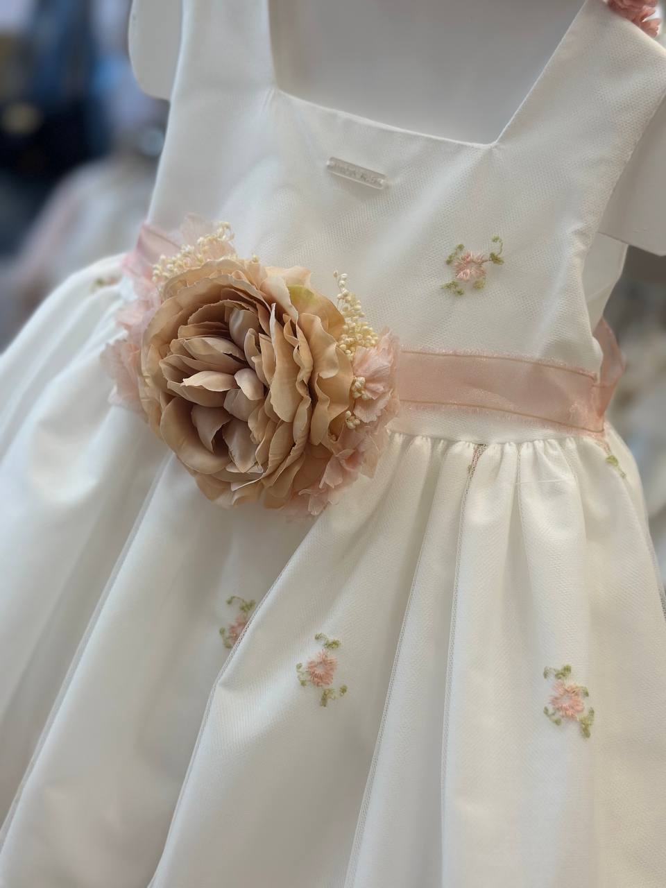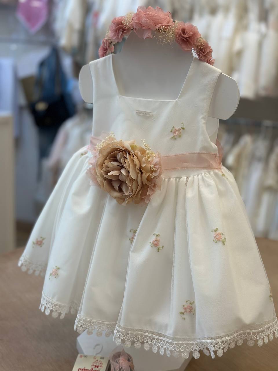 Esalta la bellezza della tua bimba con questo stupendo abito. Realizzato in morbido e leggero tessuto bianco, impreziosito da un grazioso fiore, questo abito aggiunge un tocco di eleganza alla tua bimba, perfetto per un occasione importante.