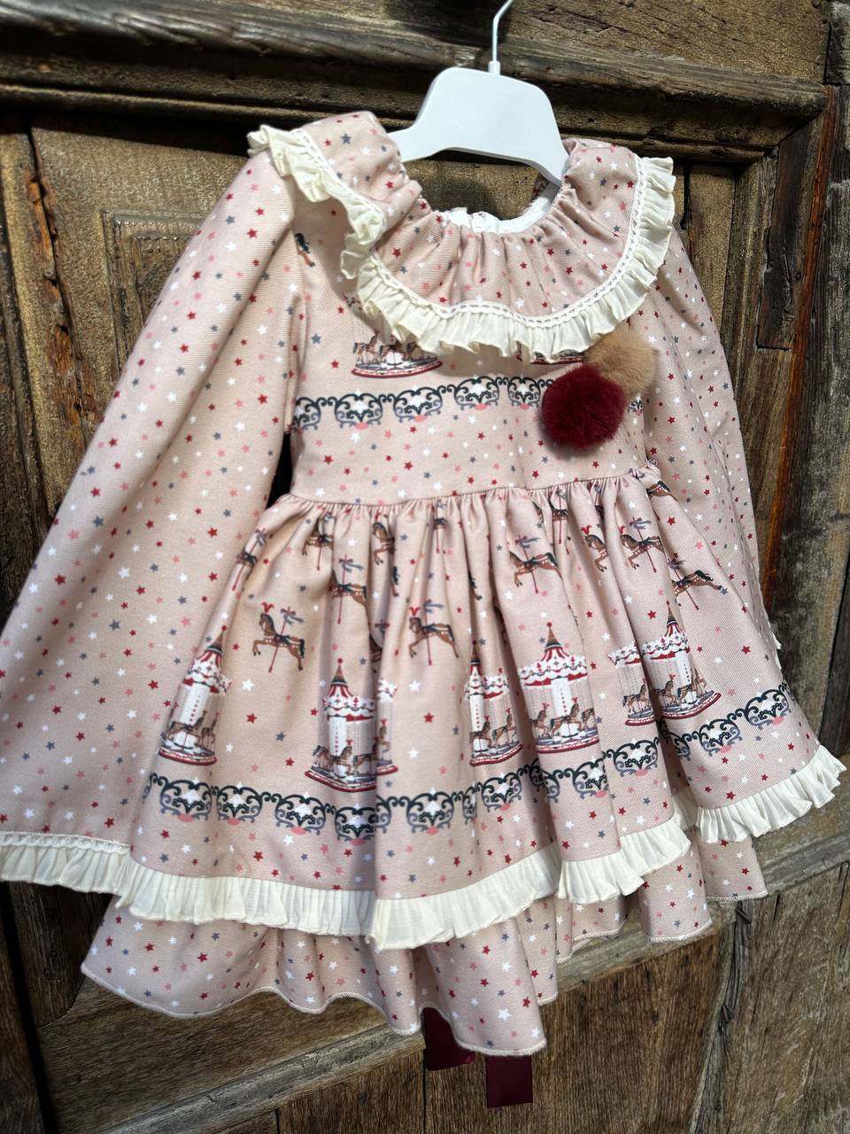 Questo è un abito elegante per cerimonie chiamato "Abito Mimosa" appositamente progettato per le bambine. Con il suo stile cerimoniale, la Mimosa enfatizza l'eleganza e la grazia per le piccole signorine. Perfetto per le occasioni speciali, questo abito porterà la tua bambina alla ribalta con la sua bellezza e raffinatezza.