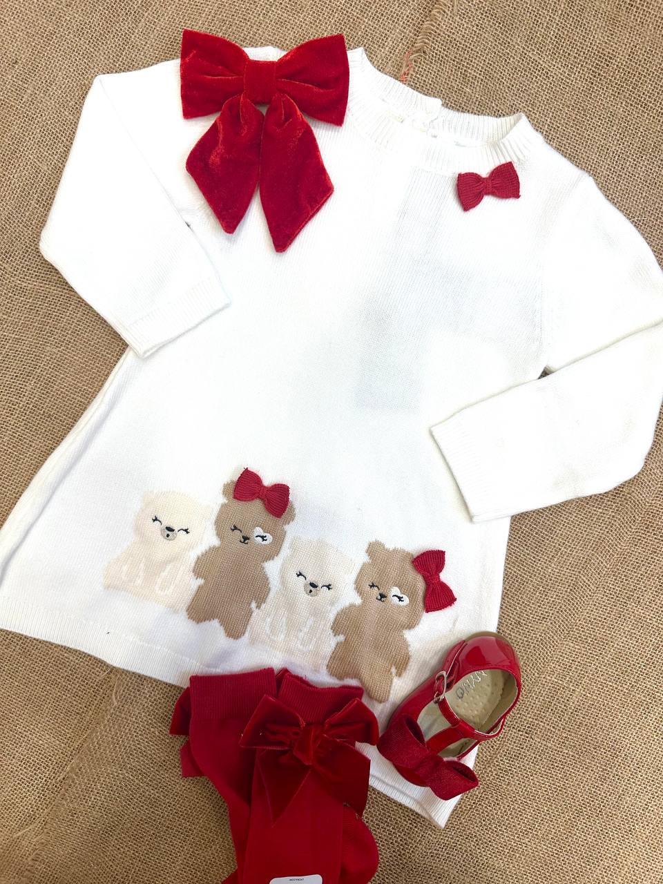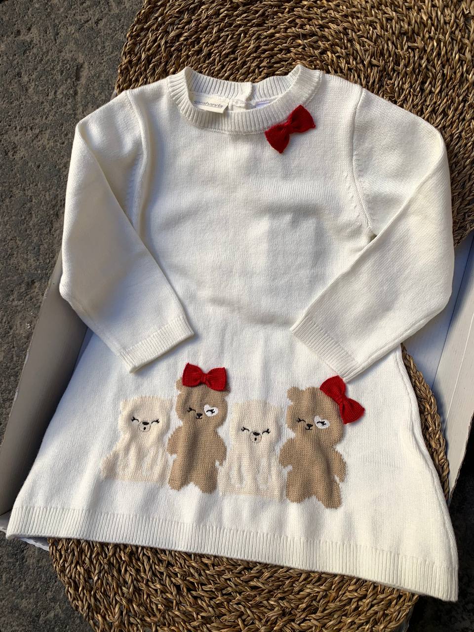 Rendi felice la tua bambina con l'adorabile Abito Orsetti Sarabanda. Il design carino e giocoso dei piccoli orsetti attirerà l'attenzione di tutti, mentre la qualità e il comfort del tessuto garantiranno una vestibilità comoda per tutta la giornata. Perfetto per un look casual o per occasioni speciali.