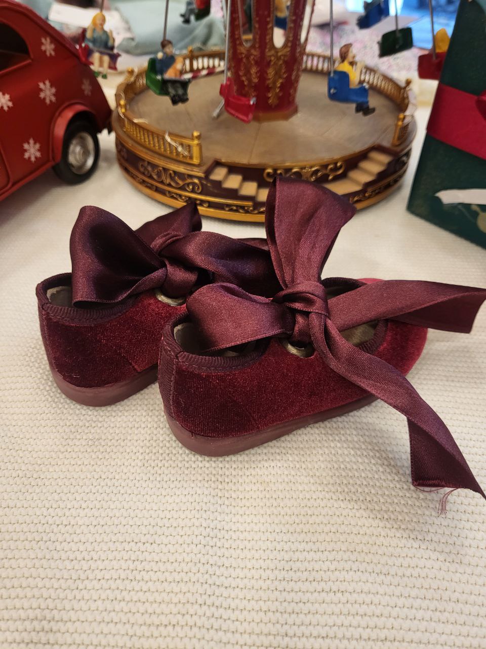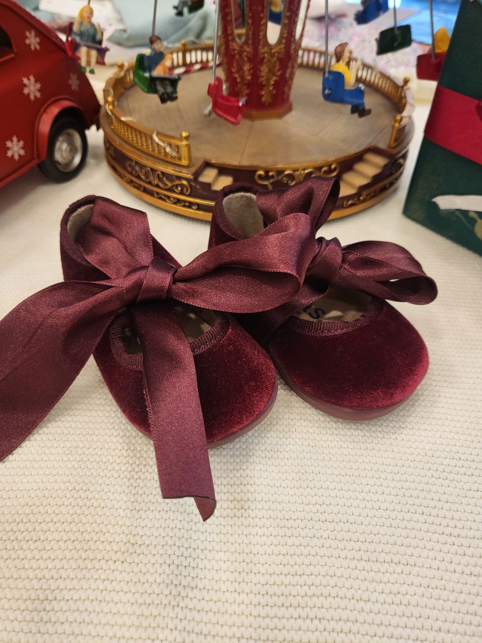 Scopri l'eleganza del velluto bordeaux con fiocco batilas in questa bambolina adorabile! Perfetta per i primi passi, offre morbidezza e comfort per il tuo piccolo tesoro. Lasciati conquistare dalla sua bellezza e non resistere alla tentazione di abbracciarla! Porta magia e dolcezza nella vita del tuo bambino!