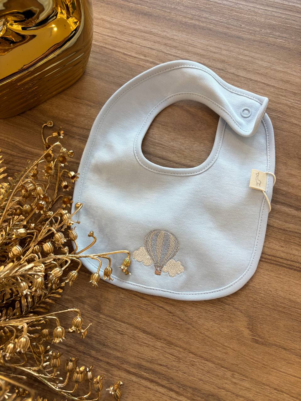 Bavaglino in cotone morbido con stampa mongolfiera celeste, perfetto per proteggere gli abiti del tuo neonato durante i pasti. Il design delicato e colorato cattura l'attenzione del piccolo, mentre i materiali di qualità garantiscono comfort e durabilità . Facile da lavare e asciugare, è l'accessorio indispensabile per ogni genitore che desidera praticità senza rinunciare allo stile. Ideale come regalo per baby shower o per completare il corredo del neonato.