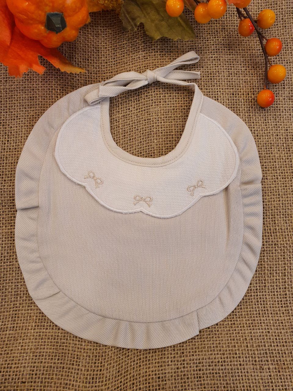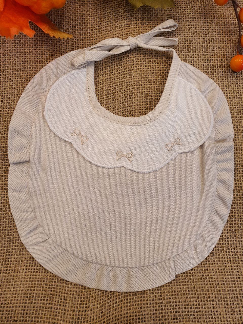 BAVETTA BIANCO-BEIGE DOPPIO BAVERO CON FIOCCO RICAMATO PAPPA&LATTE