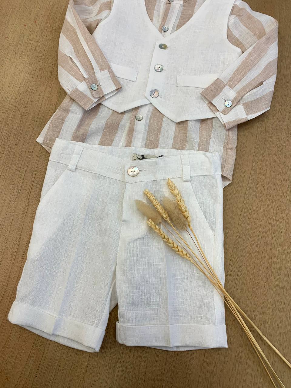 Vestiti il tuo piccolo con lo stile lussuoso di Bermuda in lino bianco Jo Milano per bambini! Realizzati con materiali di alta qualità , questi bermuda offrono un comfort superiore e un look elegante per il tuo bambino. Aggiungi un tocco di classe al suo guardaroba con i Bermuda in lino bianco di Jo Milano!