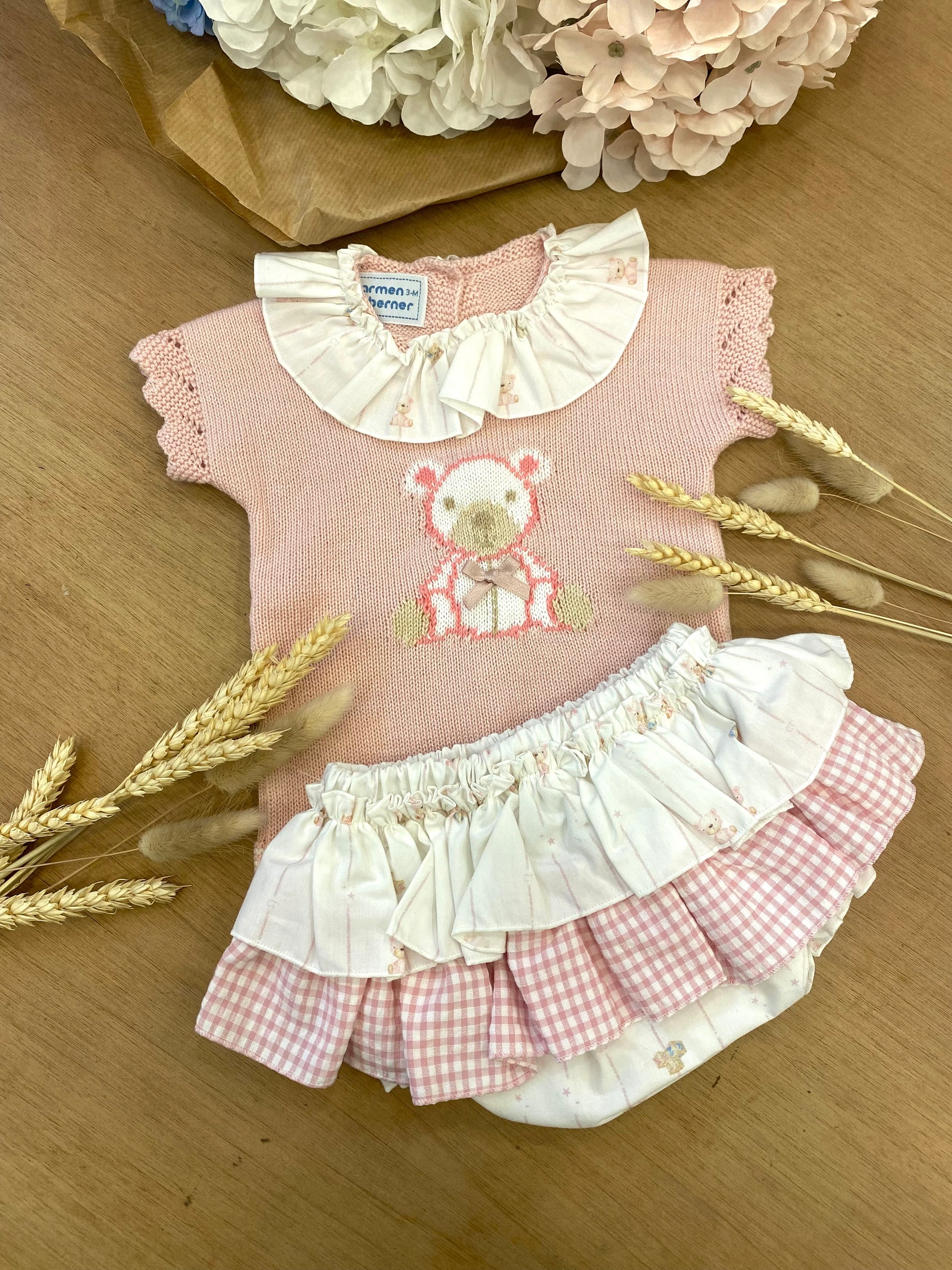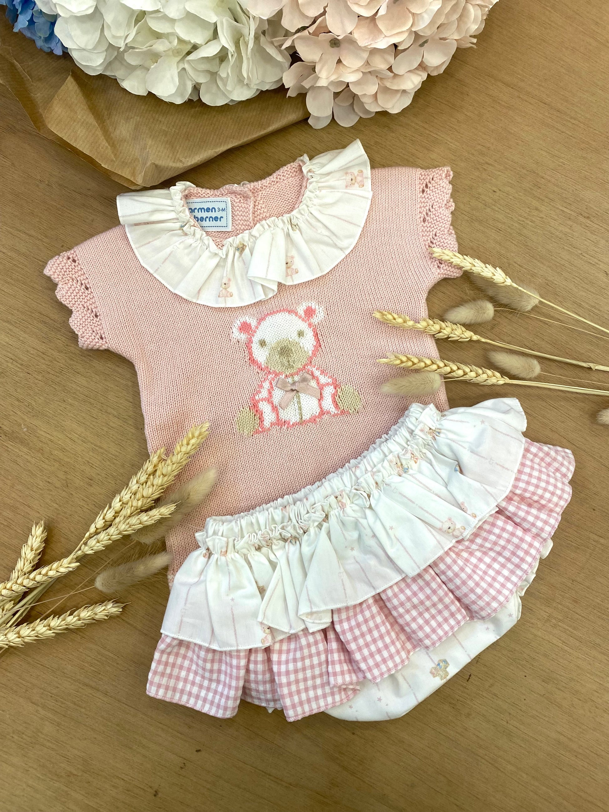 Completino Carmen Taberner con magliettina in filo con colletto e culotte gonnellina