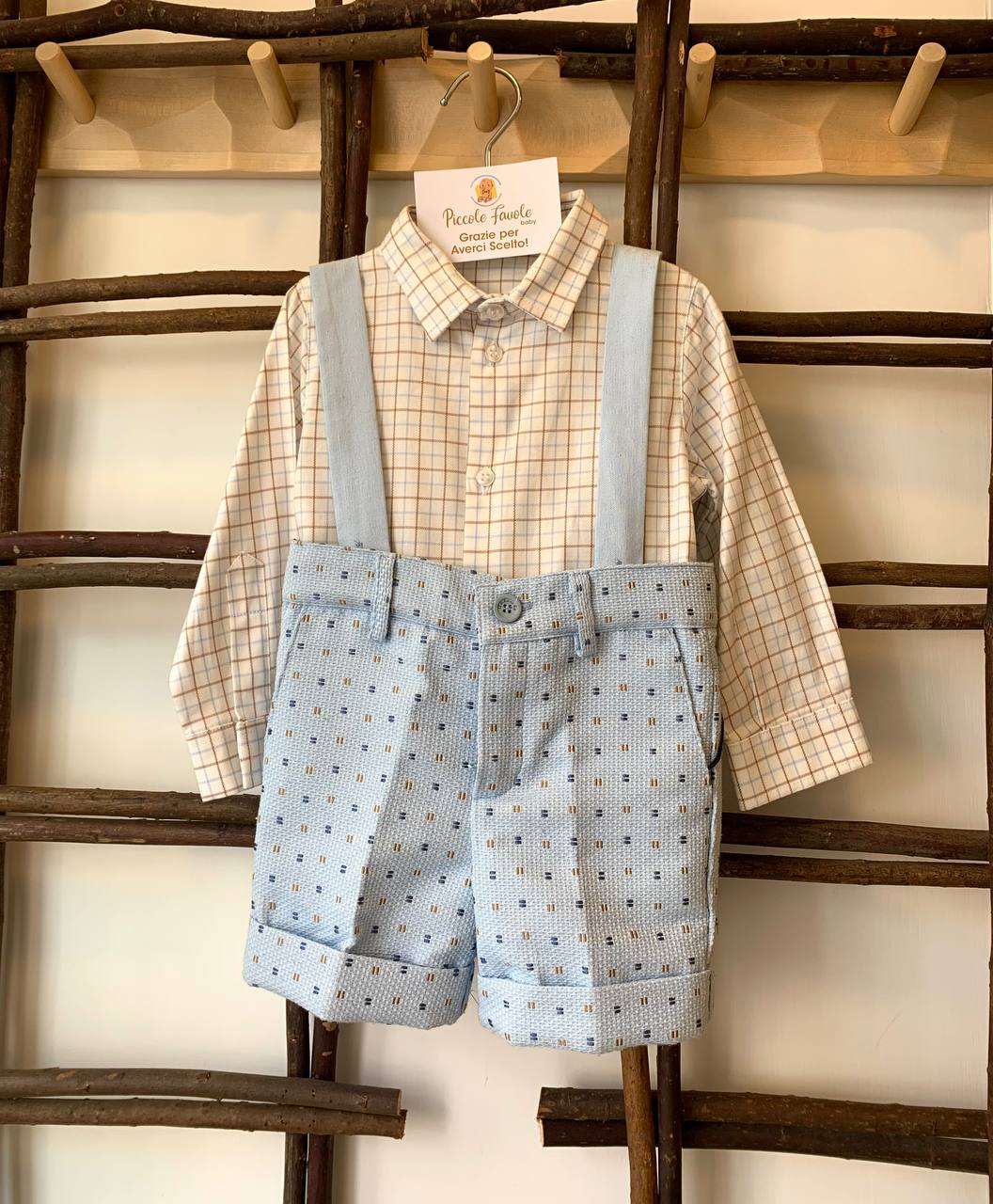COMPLETO COMPOSTO DA CAMICIA PANTALONE CON BRETELLE E GIACCA