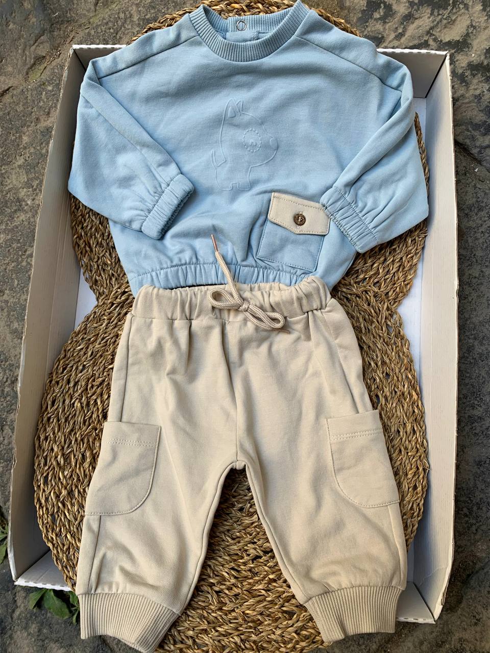 Questo completo per neonati è composto da una felpa e un pantalone, entrambi in morbida e calda minibanda. Perfetto con stile e comodità . Il tessuto di alta qualità garantisce un look elegante e confortevole, ideale per le giornate più fredde.