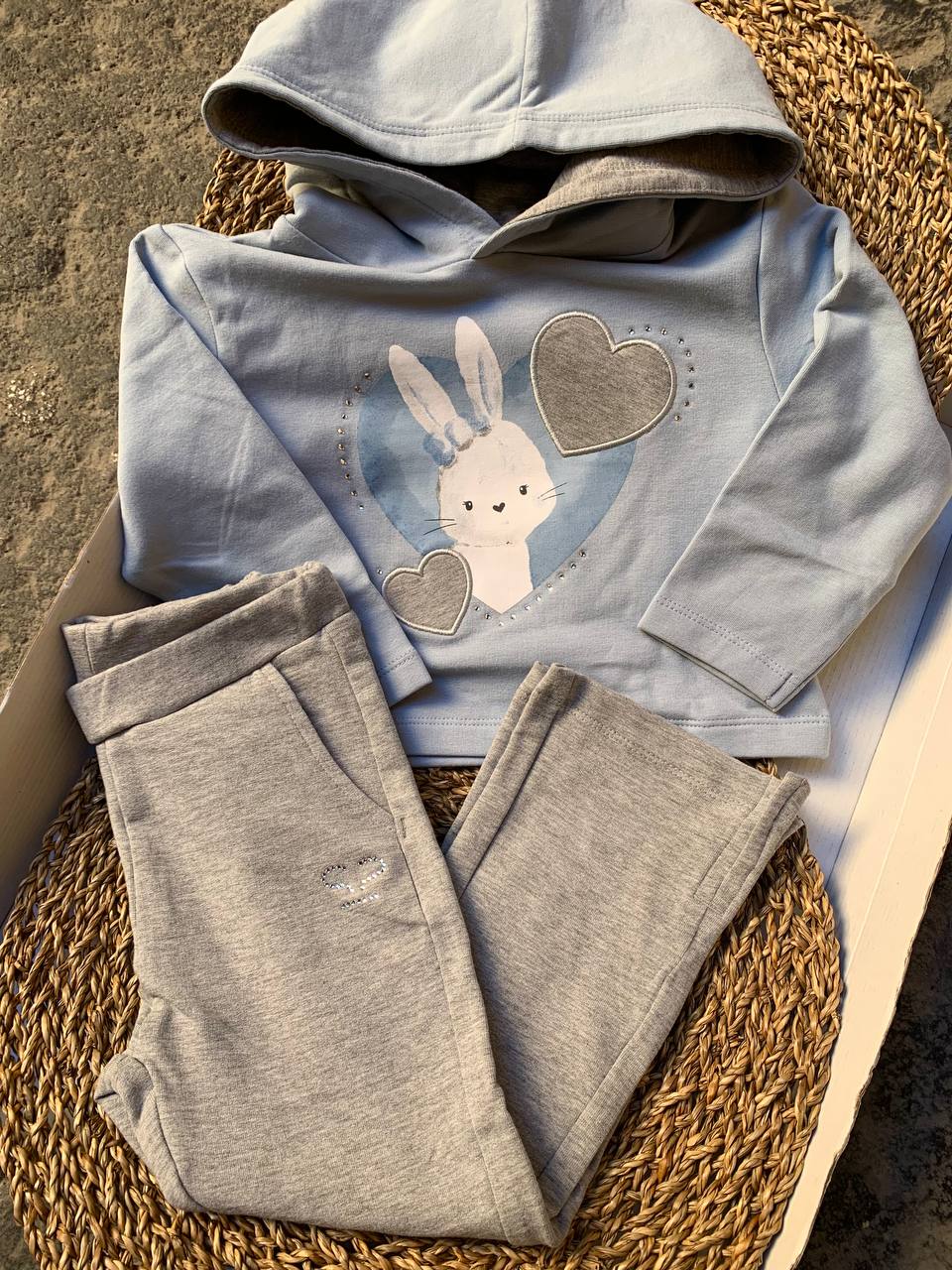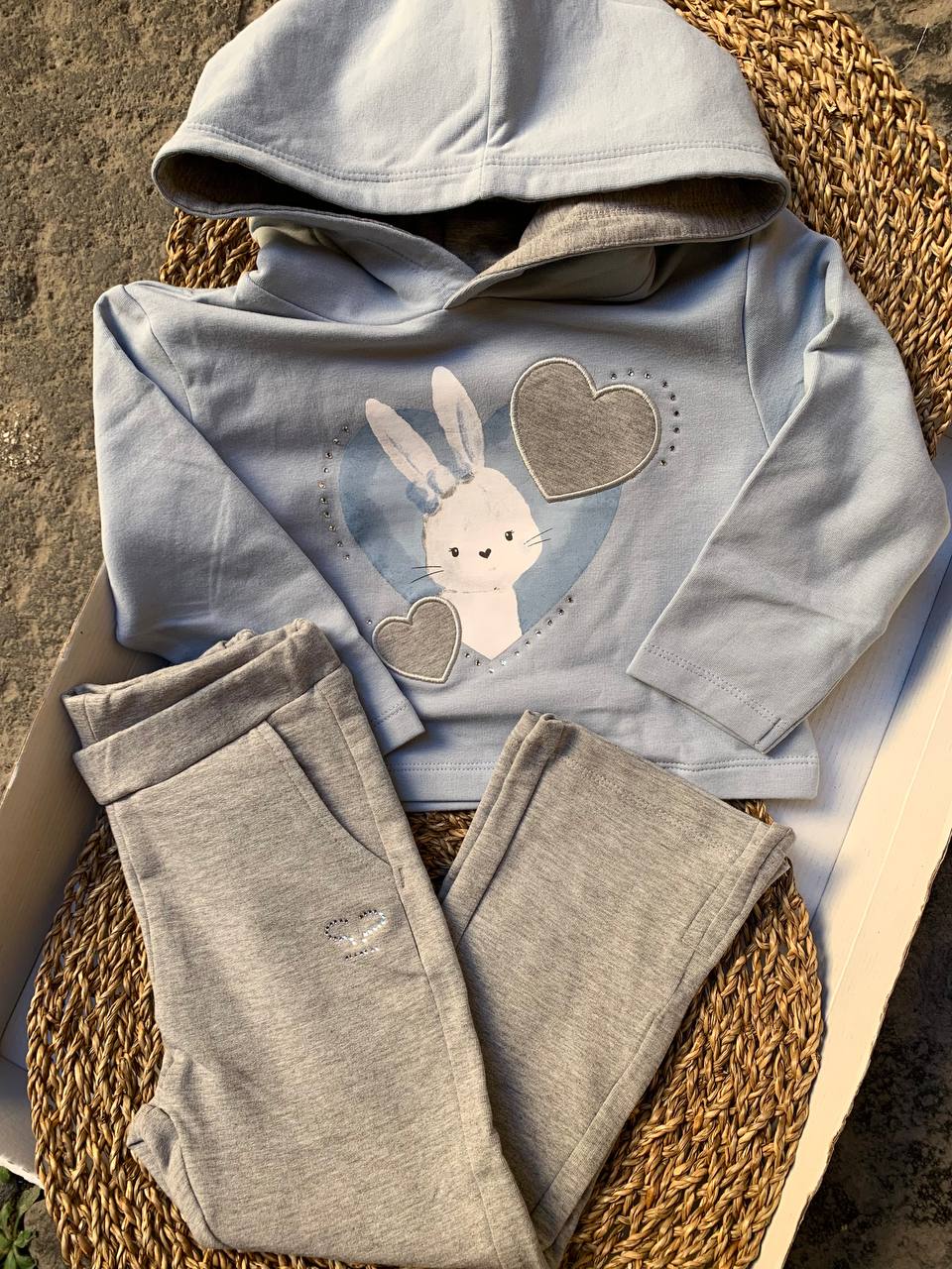 Questo adorabile completo tuta coniglietto sarabanda aggiungerà un tocco di dolcezza al guardaroba della tua bambina. Realizzato con materiali di alta qualità , offre comfort e stile grazie al suo design unico. Perfetto per le giornate di gioco e le occasioni speciali, con questo completo la tua piccola sarà sempre alla moda e a suo agio.