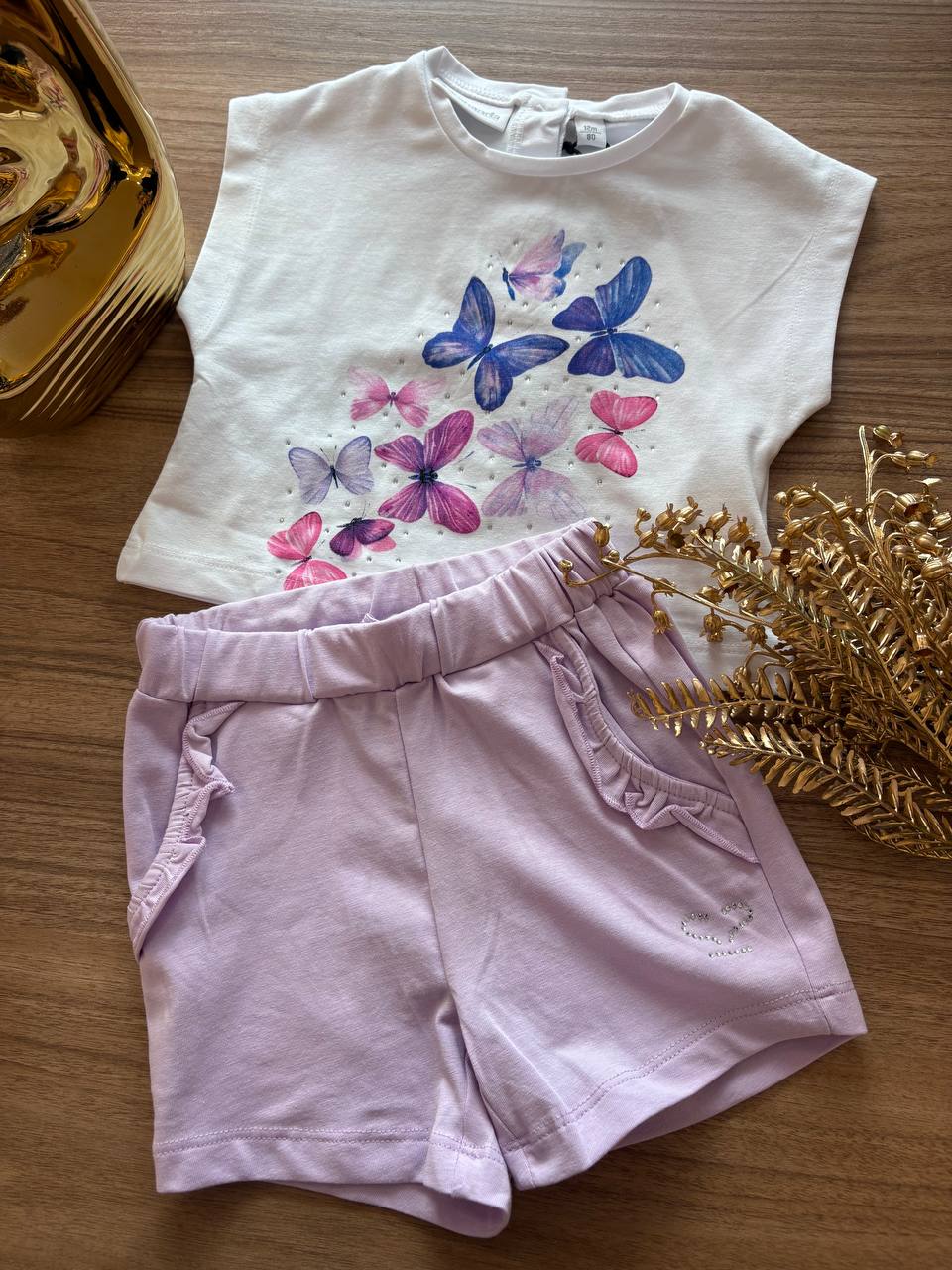 Il Completo FARFALLE SARABANDA consiste in un set di shorts e t-shirt per bambina, progettato per garantire comfort e libertà di movimento. Realizzato con materiali di alta qualità , è ideale per attività quotidiane, offrendo una vestibilità ottimale per il gioco e il tempo libero.