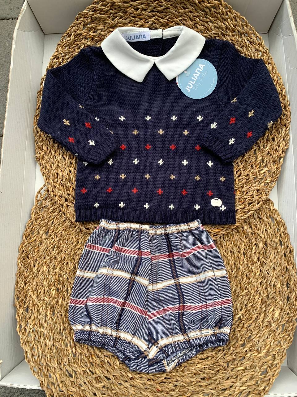 Questo completo marino neonato Juliana è perfetto per il tuo piccolo. Realizzato con materiali di alta qualità , è morbido e confortevole per la pelle delicata del tuo bambino, consentendogli di muoversi liberamente e senza restrizioni. Il design classico e elegante è adatto per ogni occasione. Combina praticità e stile per il massimo comfort del tuo bambino.