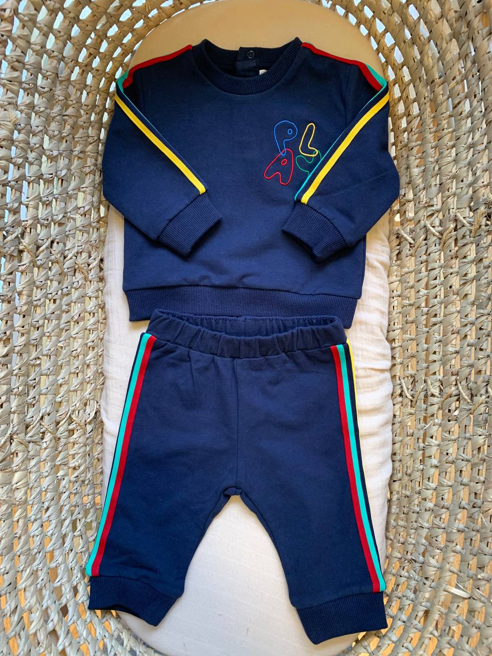 Il completo Mini Birba è il perfetto outfit per il tuo neonato. Realizzato con materiali di alta qualità , la tuta è confortevole e resistente. Il design moderno e colorato renderà il tuo bambino ancora più adorabile. Vestirlo non è mai stato così facile ed elegante.