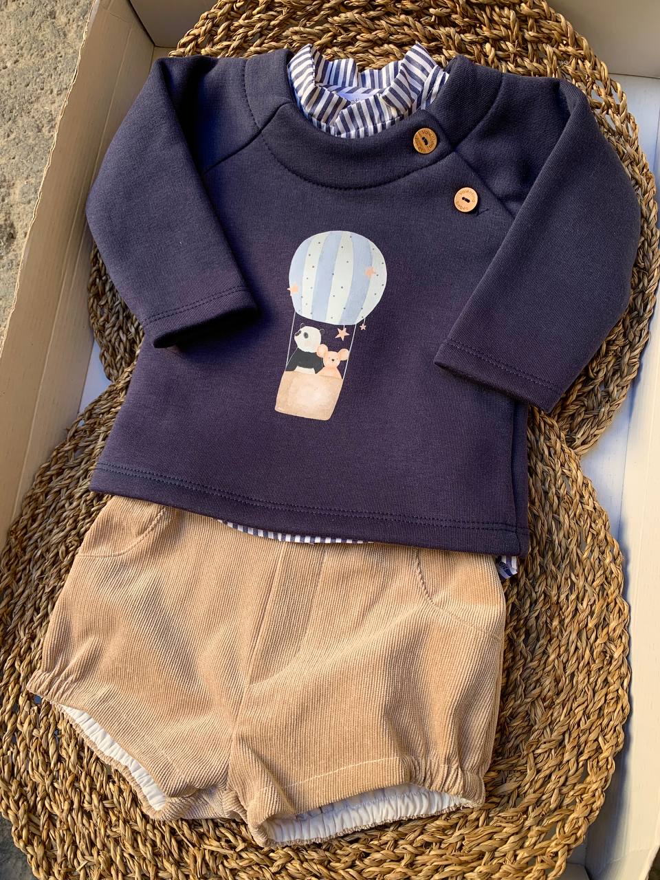 Progettato per i neonati più adorabili, il Completo MONGOLFIERA VALENTINA BEBÈS è composto da tre pezzi essenziali: camicia, culotte e maglioncino. Realizzato con cura e attenzione ai dettagli, garantisce comfort e stile al tuo piccolo tesoro. Un outfit perfetto per ogni occasione. Ordina ora!