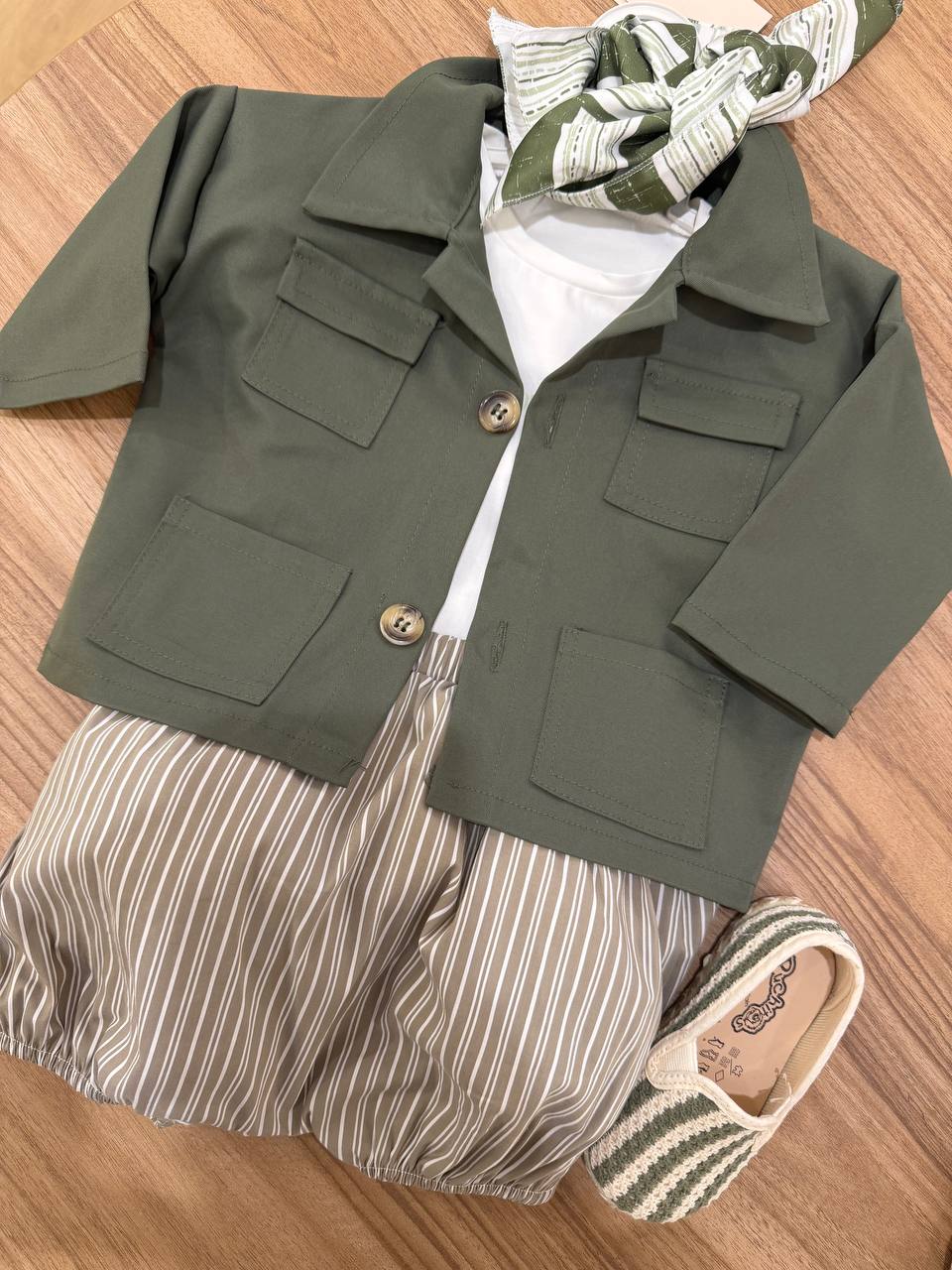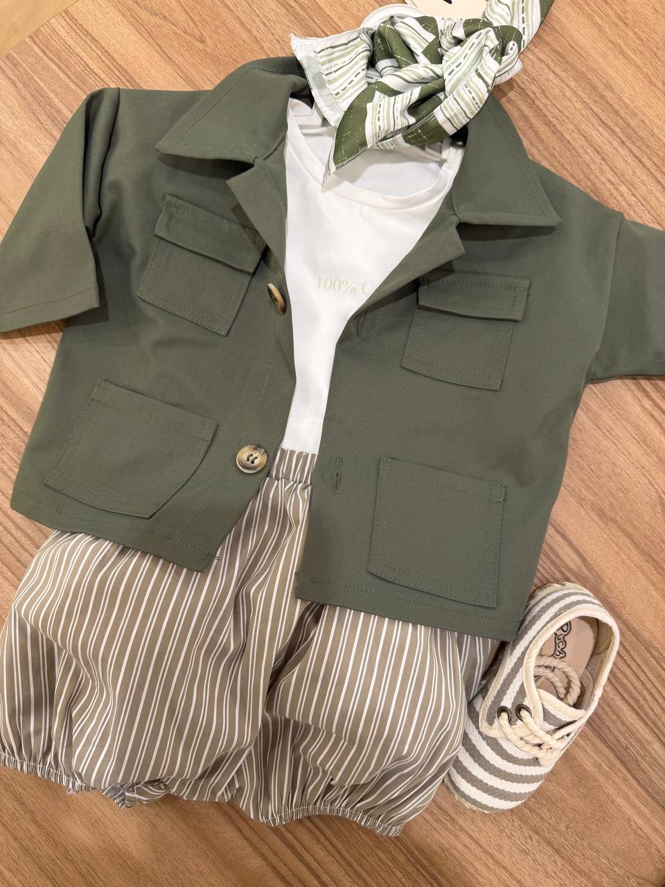 Il Completo ZEROAMPERE verde è composto da un giacchino, una t-shirt mezza manica e culotte, tutti progettati per i bambini alla moda. Realizzato con materiali di alta qualità , offre comfort e traspirabilità . La combinazione di questi articoli garantisce un look coordinato e stiloso per ogni occasione.