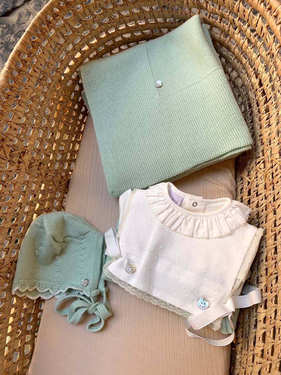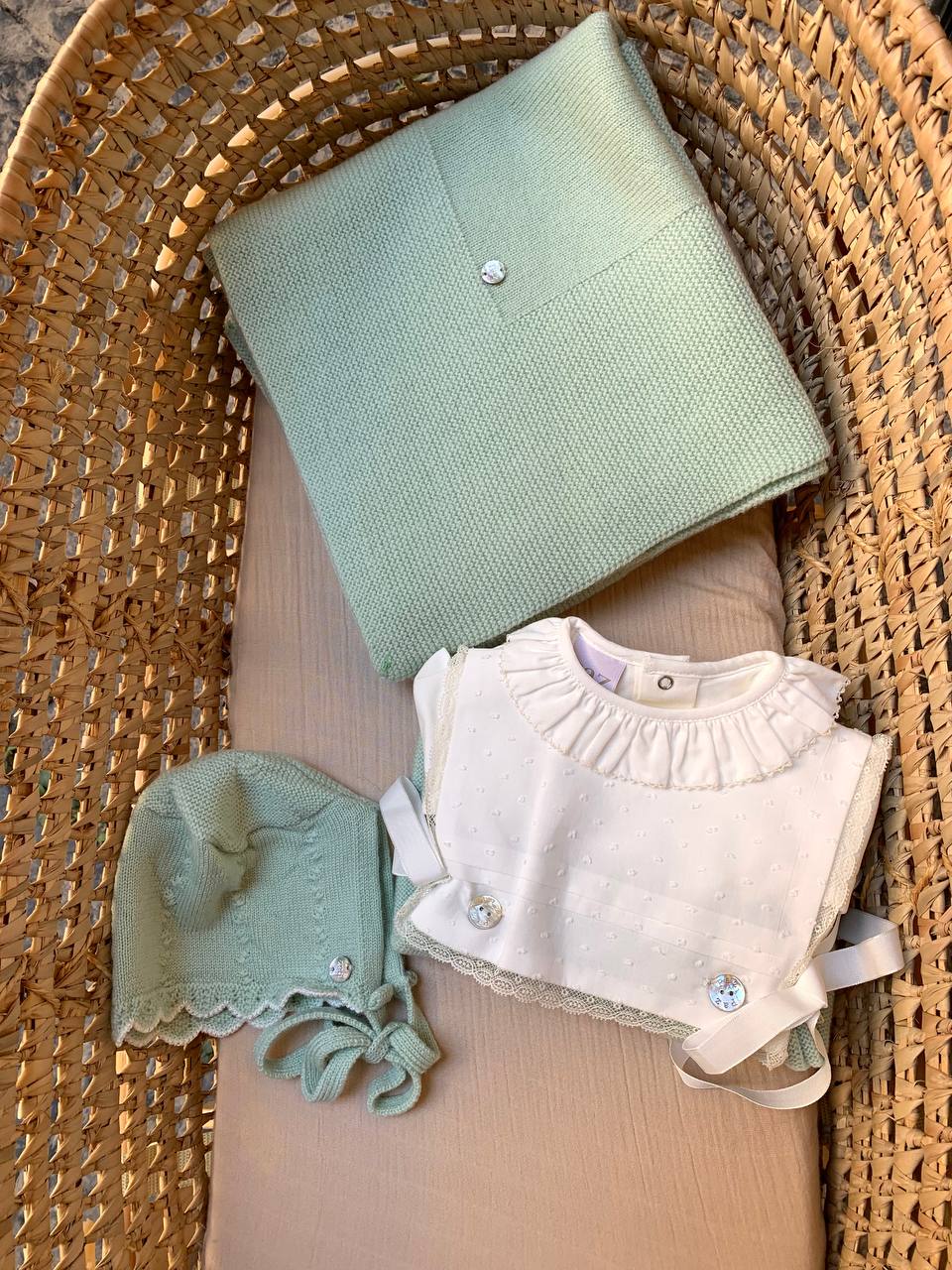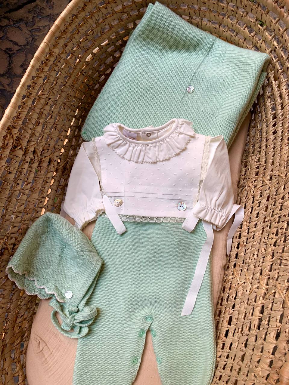 Questo coordinato nascita composto da un body, una tutina bavero, una copertina e un cappellino, è perfetto per accogliere il tuo bambino con calore. Realizzato in lana, adatto sia per maschietti che per femminucce. Garantisce comodità e comfort per i primi mesi di vita.