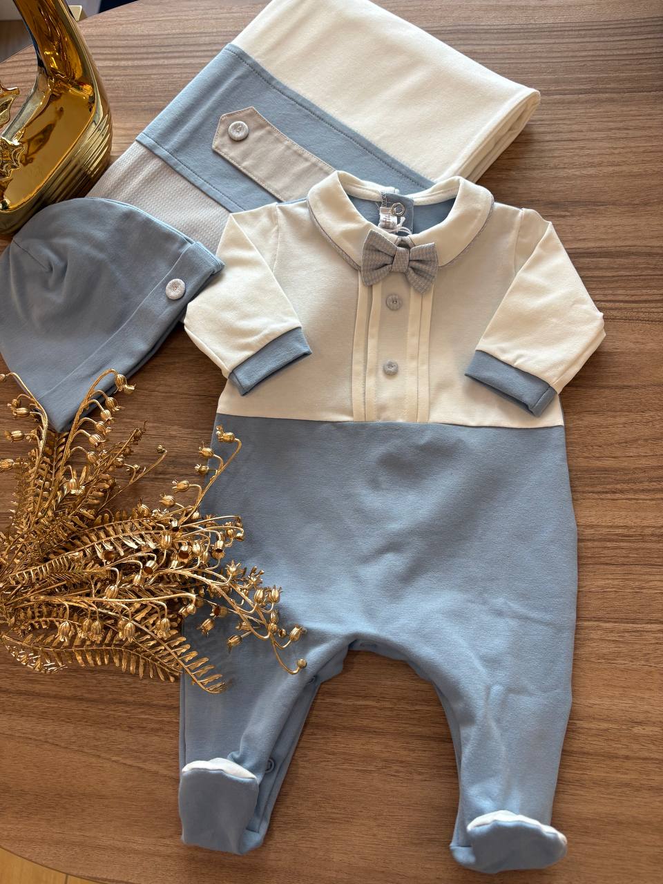 Il Coordinato NASCITA PANNA E POLVERE TETO E TATTA è progettato per neonati e include una copertina, una tutina e un cappellino. Realizzato in materiali morbidi, offre comfort e calore al neonato. Il design coordinato assicura uno stile elegante, contribuendo a un'accogliente esperienza di benvenuto per il bambino.