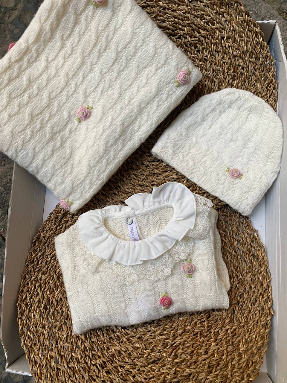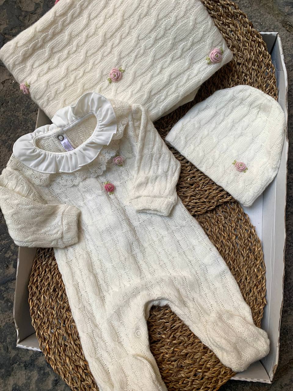 Questo coordinato nascita RICAMATO ROSELLINE è perfetto per la tua neonata. Include una copertina, una tutina e un cappellino, tutti decorati con deliziosi motivi di roselline. Con questo coordinato, la tua piccola sarà accogliente e avvolta in un morbido tessuto. Il regalo ideale per un'occasione speciale.