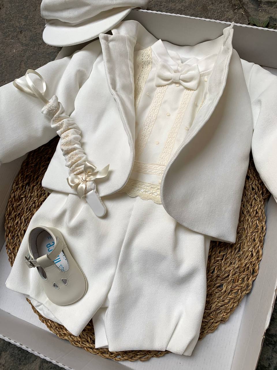 La giacca Principe perfetta per il tuo neonato durante il suo battesimo. Abbinata al vestito, offre un look coordinato e grazie all'imbottitura, garantirà al tuo bambino calore e comfort. Realizzata con materiali di alta qualità , la giacca è il complemento ideale per un'occasione speciale come il battesimo.
