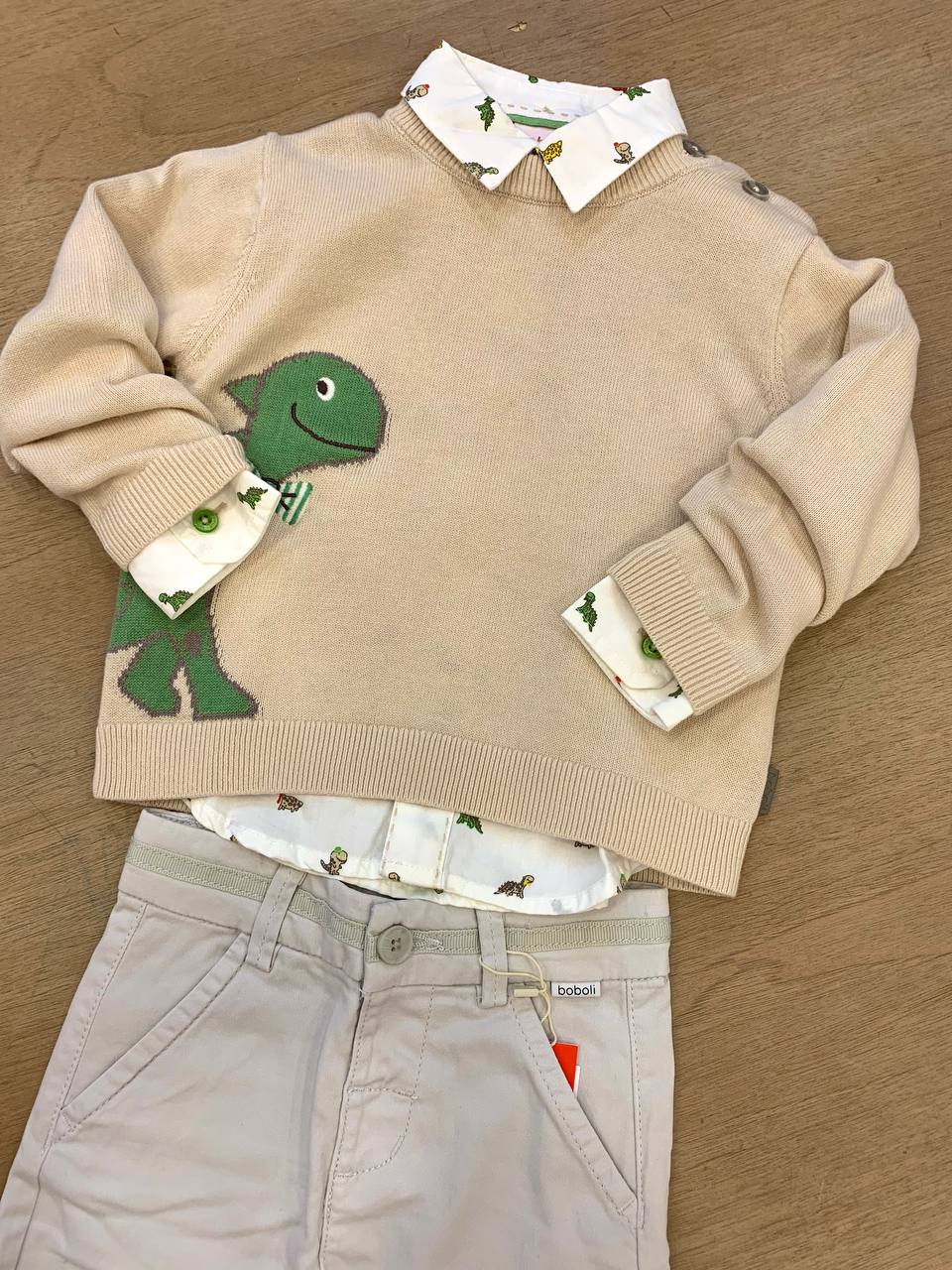 Scopri l'avventura con il Maglioncino Dinosauro Boboli! Realizzato con materiali di alta qualità , questo maglione ti terrà al caldo e alla moda. Il design unico del dinosauro farà divertire i bambini e stimolerà la loro creatività . Pronto per un'avventura preistorica? Prendi il tuo maglioncino ora!