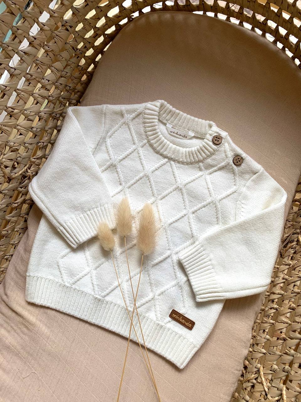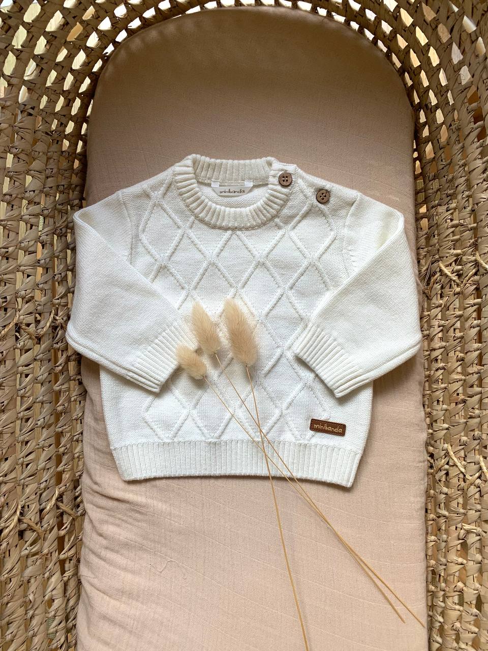"Maglioncino Minibanda per neonato, realizzato con materiali morbidi e di alta qualità . Perfetto per tenere il tuo piccolo al caldo e comodo nei mesi freddi. Con le sue morbidezza e leggerezza, sarà il capo preferito del tuo bambino."