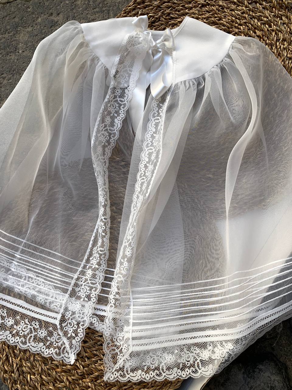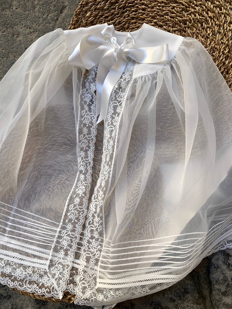 La mantella battesimale bianca Charo è perfetta per il tuo neonato/a. Realizzata con materiali di alta qualità, è morbida e confortevole per il tuo bambino. Con un design elegante e raffinato, questa mantella è ideale per la cerimonia del battesimo. Garantisce calore e protezione per il tuo piccolo durante il grande giorno.