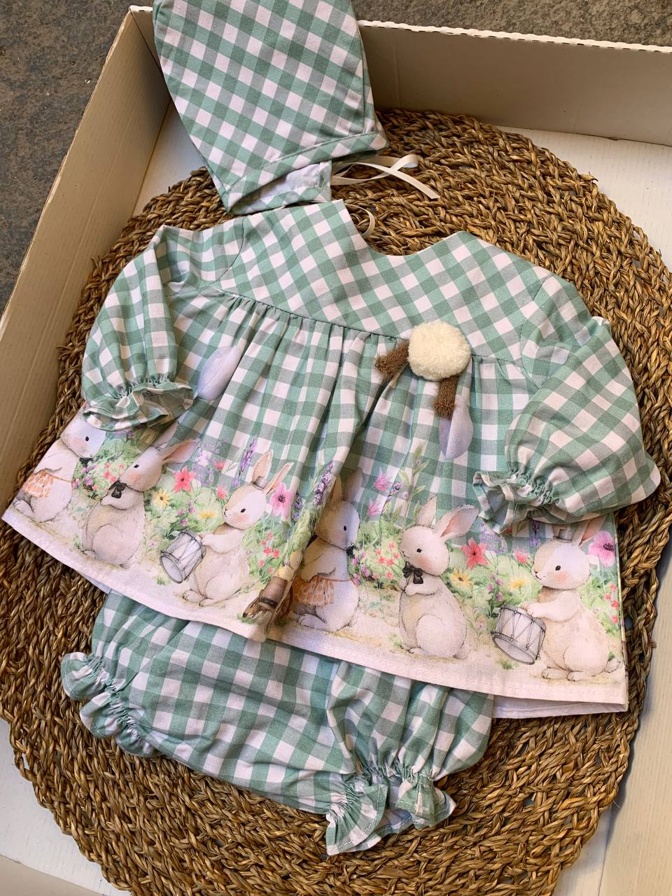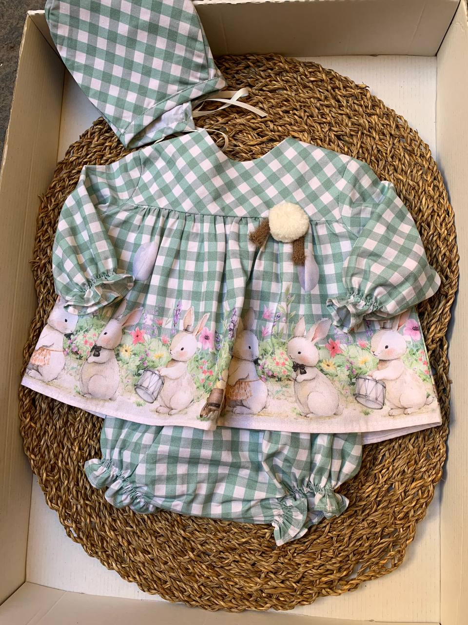 Il Pagliaccetto Coniglietti del Sur è un delizioso outfit per neonate che include un adorabile pagliaccetto con motivi di coniglietto e una cuffietta abbinata. Realizzato con materiali di alta qualità , è perfetto per tenere calda la tua bambina rendendola ancora più carina. Il regalo ideale per tutte le mamme!