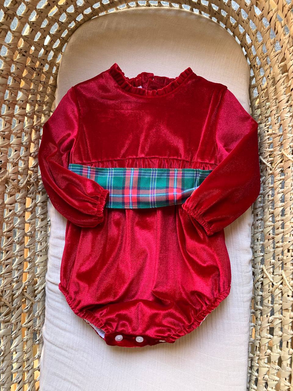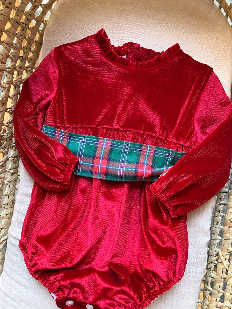 Rivivi il Natale con il Pagliaccetto Del Sur in morbido velluto rosso. Garantisce comfort e calore per il tuo bambino durante le festivitĂ . Il design elegante e il colore festoso lo rendono perfetto per le foto di famiglia. Sorprendi i tuoi cari con questo regalo speciale!
